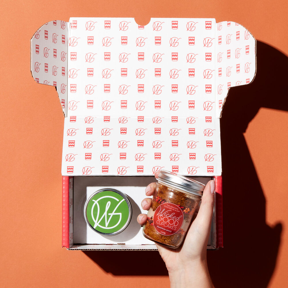 Get your fall on with seasonal flavors from Wicked Good Cupcakes! This cupcake jar two pack starts with the ultimate fall classic, Pumpkin Spice, a delicious pumpkin cake with cinnamon buttercream frosting. It's perfectly complemented with Caramel Apple Streusel, crafted with cinnamon cake, caramel apple filling, streusel, and cinnamon buttercream frosting. Contains one jar of each flavor.