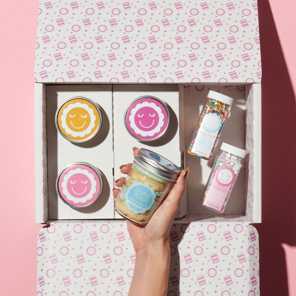 Extra holiday magic? Yes, please! Dig into the full collection of limited-edition cupcake jars featuring premium Sweetapolita sprinkles. Then, add a touch of special holiday cheer to your holiday baking projects with two jars of artisan Sweetapolita sprinkles. Includes one each of White Chocolate Mint, Sugar Cookie, Cinnamon Roll, and Sparkling Cranberry Cupcakes, one jar of crunchy rainbow sprinkles, and one jar of sprinkle medley.